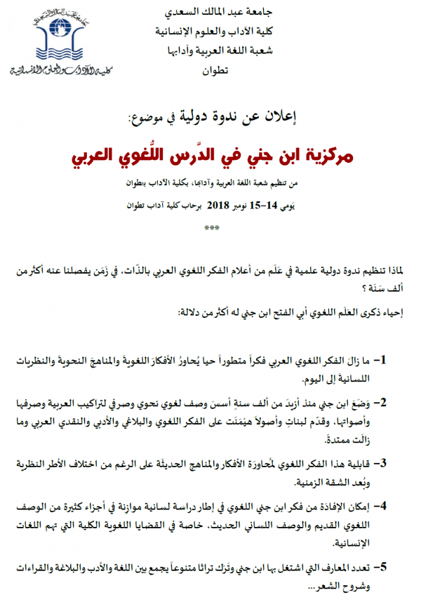 من تنظيم شعبة اللغة العربية وآدابها، بكلية الآداب بتطوان