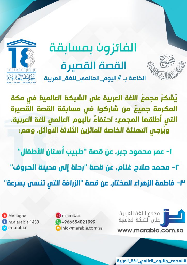 💎✨ الفائزون بمسابقة القصة القصيرة الخاصّة بـ #اليوم_العالمي_للغة_العربية