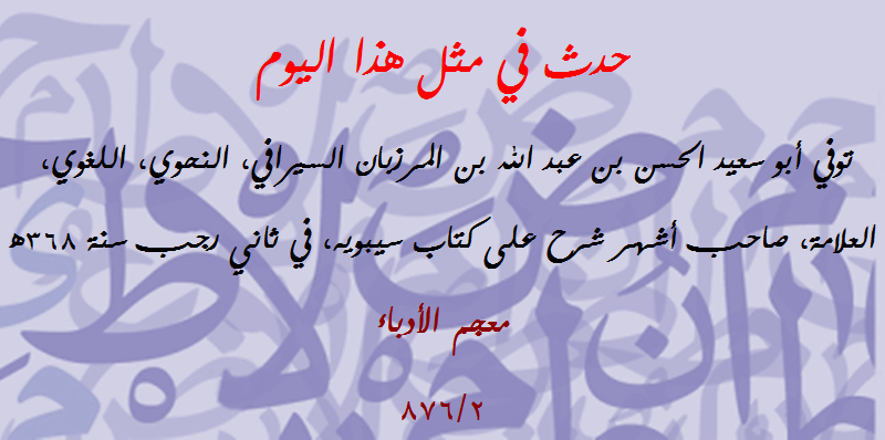 حدث في مثل هذا اليوم (131): توفي أبو سعيد السيرافي النحوي اللغوي العلامة شارح سيبويه
