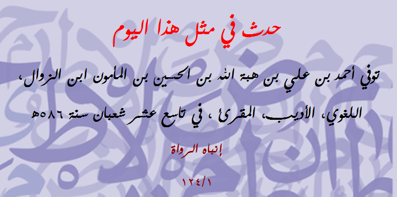 حدث في مثل هذا اليوم (159): توفي ابن الزوال اللغوي الأديب المقرئ