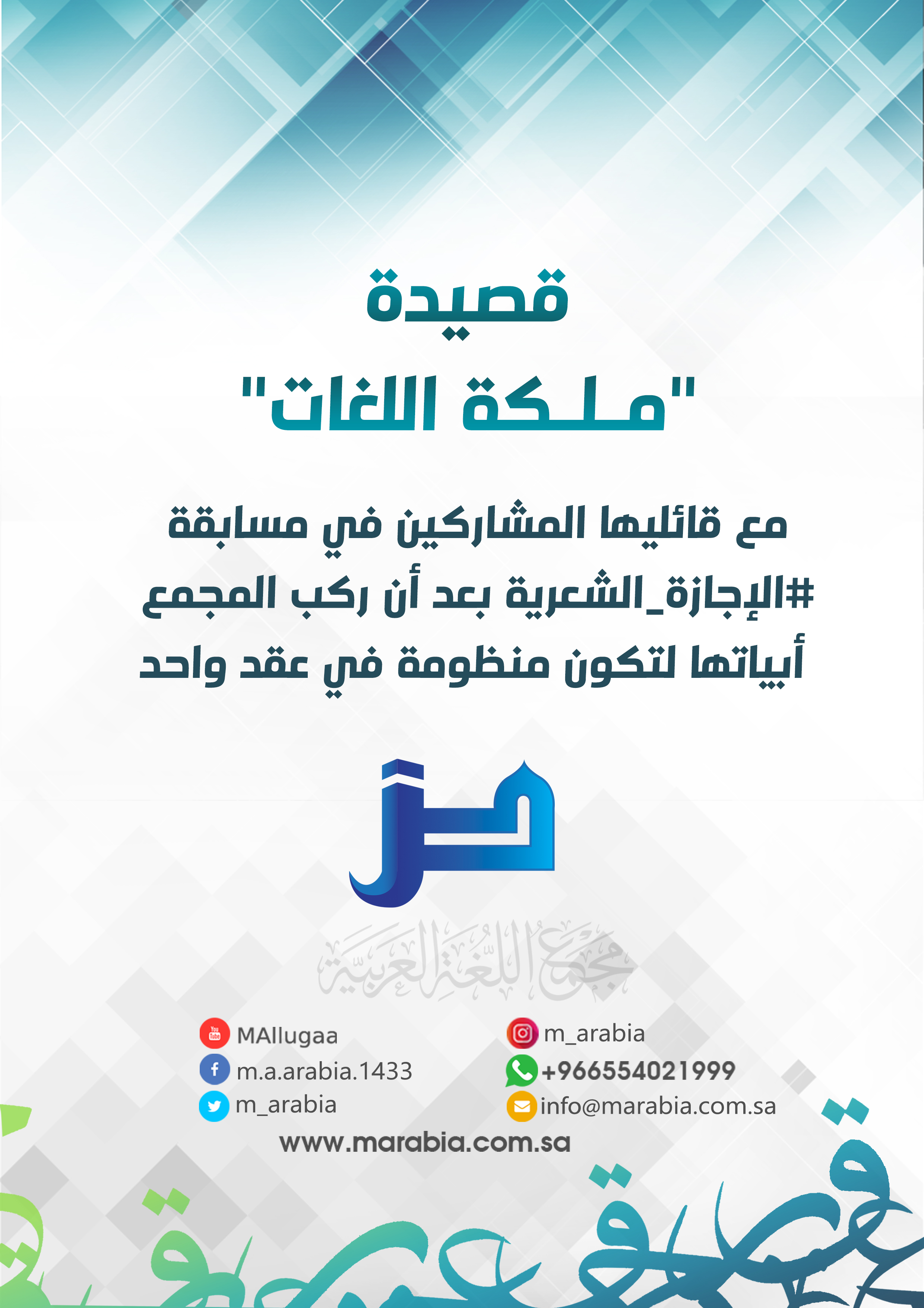 💎✨قصيدة (ملكة اللغات) مع قائليها المشاركين في مسابقة #الإجازة_الشعرية بعد أن ركب المجمع أبياتها لتكون منظومة في عقد واحد: