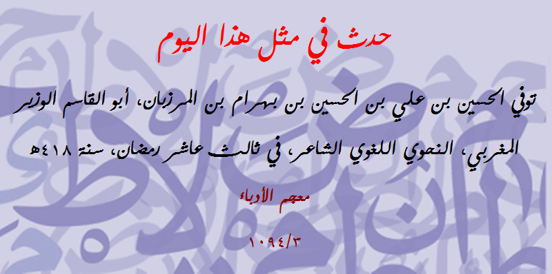 حدث في مثل هذا اليوم (172): توفي أبو القاسم الوزير المغربي النحوي اللغوي الشاعر