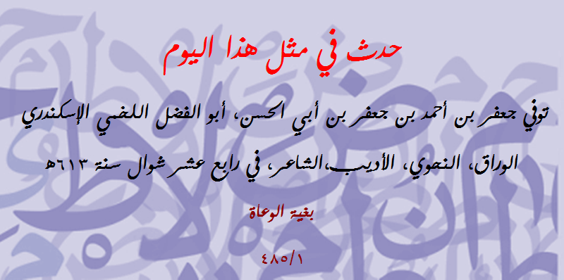 حدث في مثل هذا اليوم (188): توفي أبو الفضل اللخمي الإسكندري الوراق النحوي الأديب
