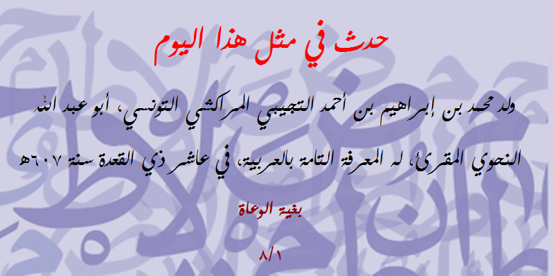 حدث في مثل هذا اليوم (202): ولد أبو عبد الله التجيبي المراكشي النحوي المقرئ