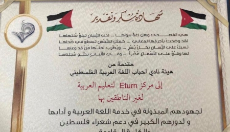 هيئة نادي أحباب اللغة العربية الفلسطيني يكرم مجلس ETurn الدولي