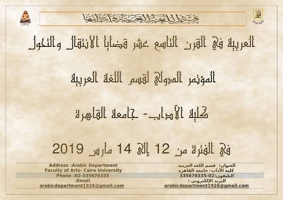 المؤتمر الدولي: "العربية في القرن التاسع عشر قضايا الانتقال والتحول" بآداب القاهرة