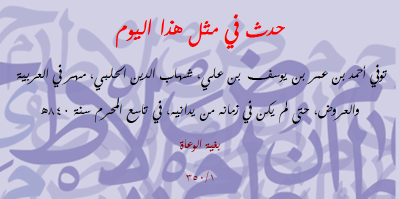 حدث في مثل هذا اليوم (232): توفي شهاب الدين الحلبي اللغوي العروضي