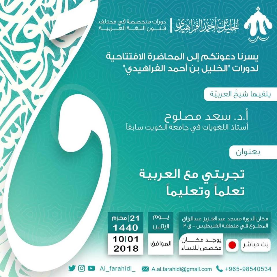 مركز الخليل بن أحمد بالكويت يفتتح محاضراته بدعوة أ.د سعد مصلوح في:"تجربتي عن العربية"