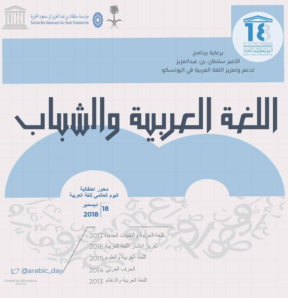 برعاية برنامج الأمير سلطان بن عبدالعزيز لدعم وتعزيز اللغة العربية في اليونسكو وبالتعاون بين يونسكو أرابيك @UNESCOarabic و المندوبية السعودية تقرر أن يكون محور #اليوم_العالمي_للغة_العربية هو #اللغة_العربية_والشباب في ديسمبر القادم.