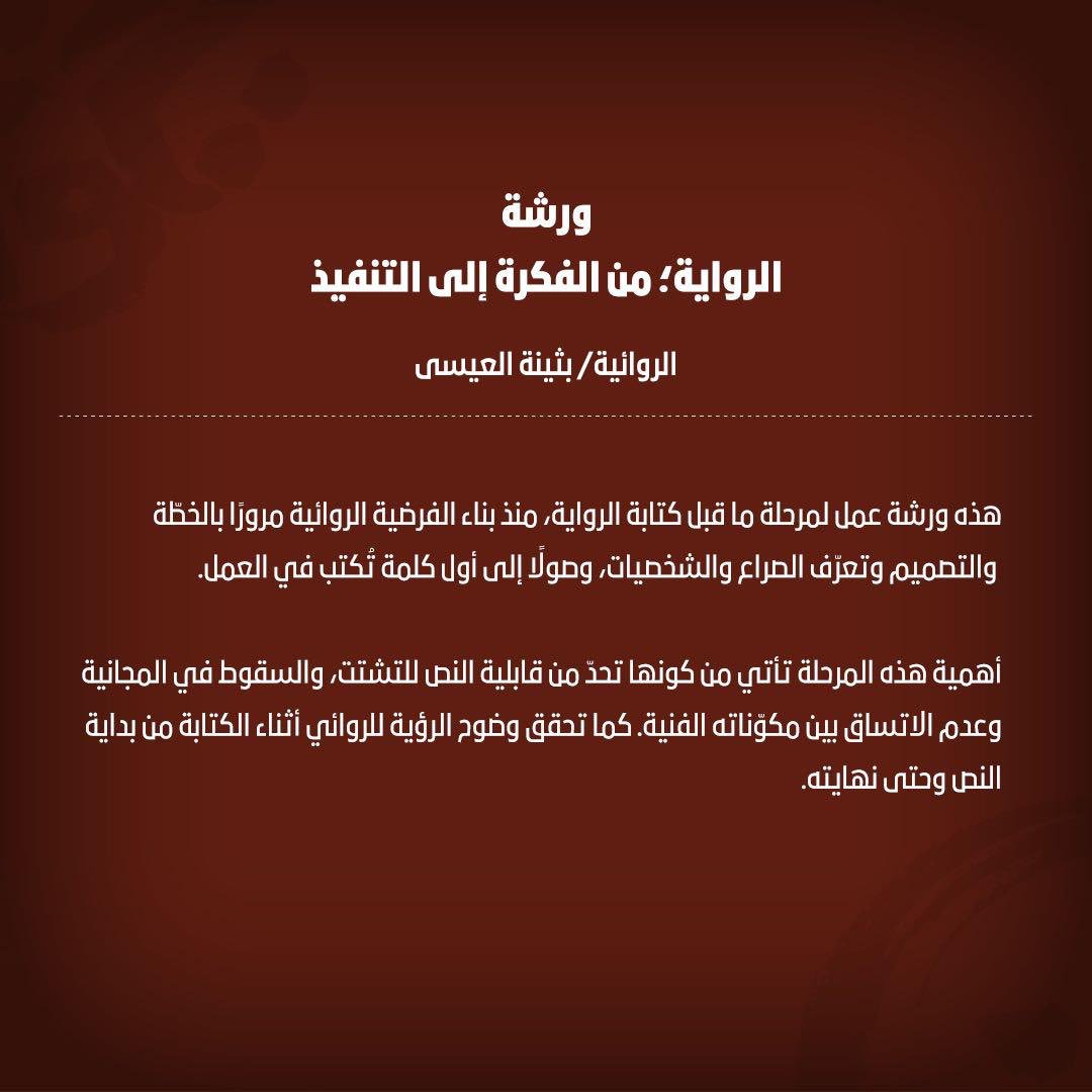 ورشة عمل للكاتبة بثينة العيسي بالرياض عن: "الرواية من الفكرة إلى التنفيذ"