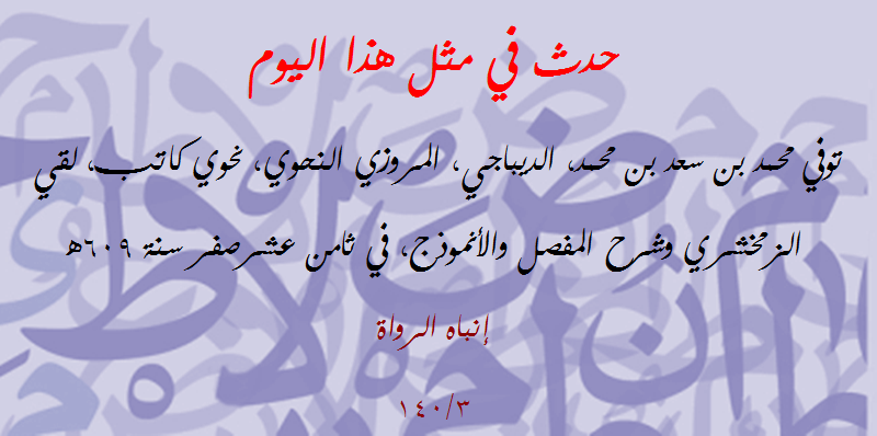 حدث في مثل هذا اليوم (254): توفي أبو الفتح الديباجي المروزي النحوي الكاتب