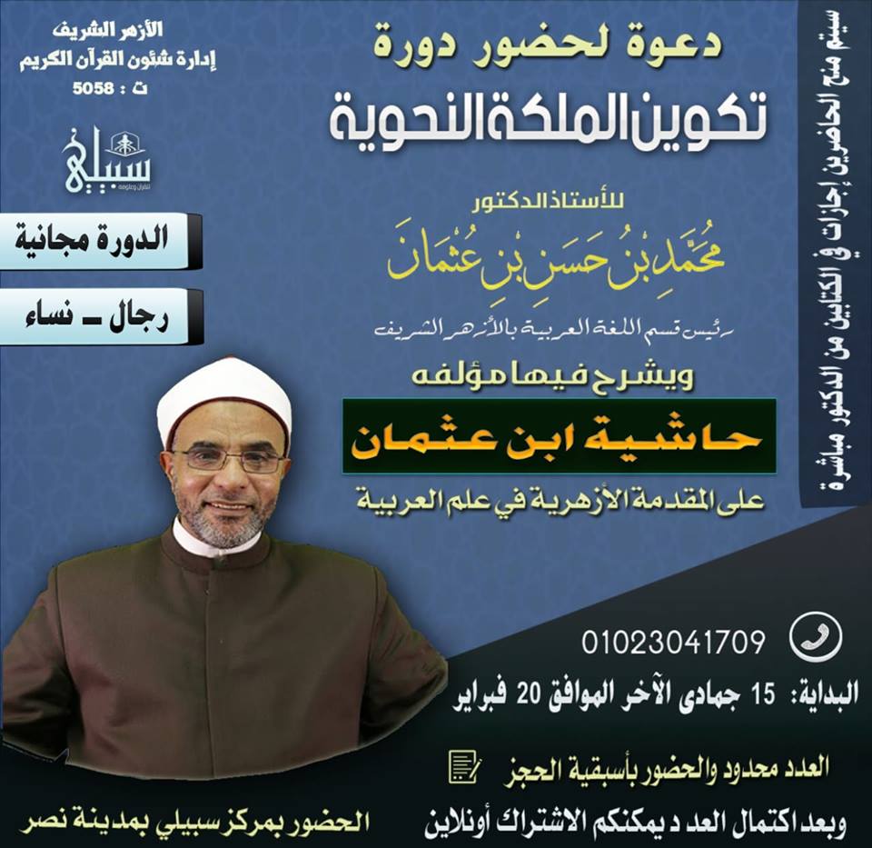 دعوة لحضور دورة " تكوين الملكة النحوية" للدكتور محمد حسن عثمان