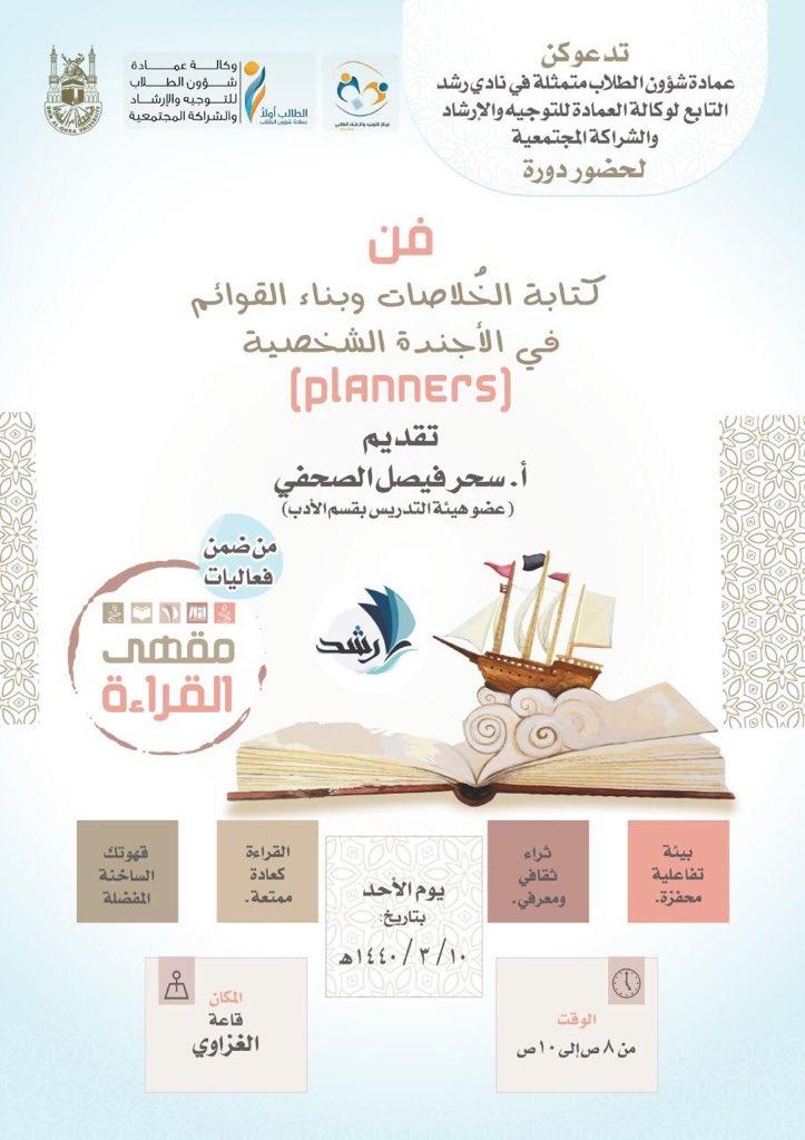 دورة للطالبات بعنوان : "فن كتابة الخلاصات وبناء القوائم في الأجندة الشخصية" بجامعة أم القرى
