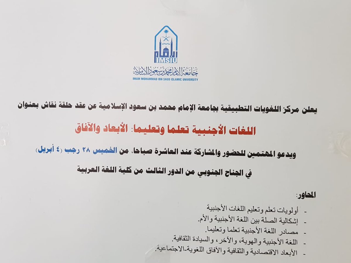 مركز اللغويات التطبيقية بجامعة الإمام يقيم حلقة نقاش: اللغات الأجنبية تعلمًا وتعليمًا