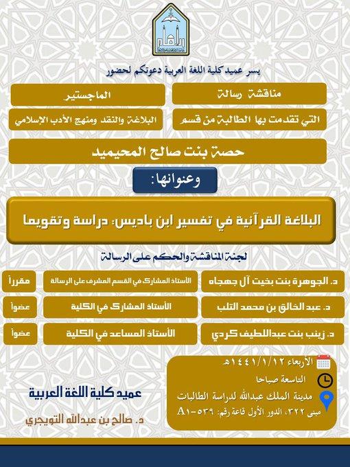 مناقشة "الماجستير": البلاغة القرآنية في تفسير ابن باديس: دراسة وتقويمًا