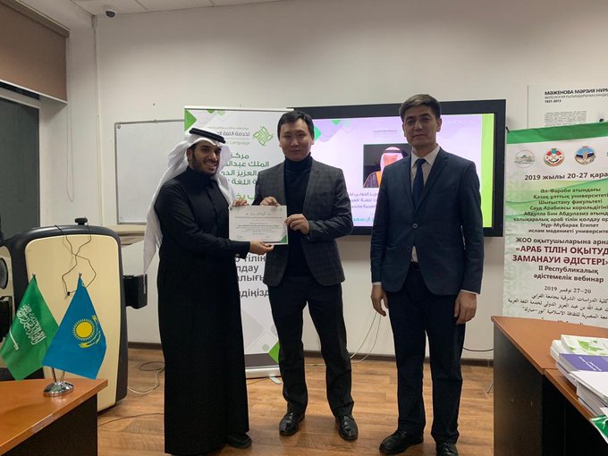 [IMG][/IMG]اختتم مركز الملك عبد الله بن عبد العزيز الدولي لخدمة اللغة العربية الدورة التدريبية الأولى التى عقدها المركز ضمن برنامجه العلمي في مدينة #ألماتي بجمهورية #كازاخستان بالتعاون مع كلية الدراسات الشرقية بجامعة الفارابي.