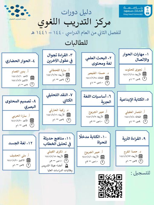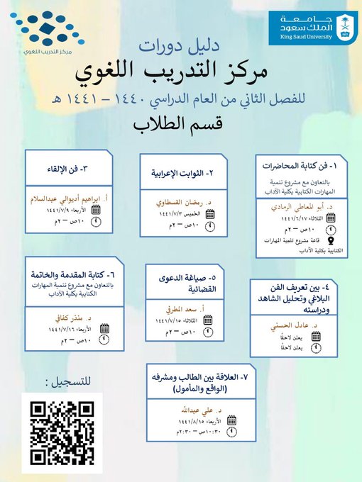 مركز التدريب اللغوي بالملك سعود يعلن عن حزمة دورات لغوية هذا الفصل الدراسي