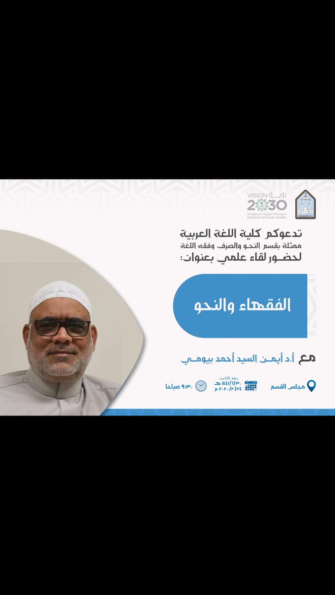 [IMG][/IMG]يسر قسم النحو والصرف وفقه اللغة بكلية اللغة العربية بجامعة الإمام محمد بن سعود الإسلامية أن يدعوكم إلى لقائه العلميّ:(الفقهاء والنحو).