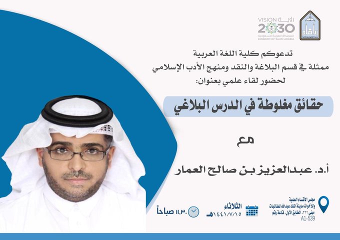 لقاء بعنوان: ( حقائق مغلوطة في الدرس البلاغي) بجامعة الإمام