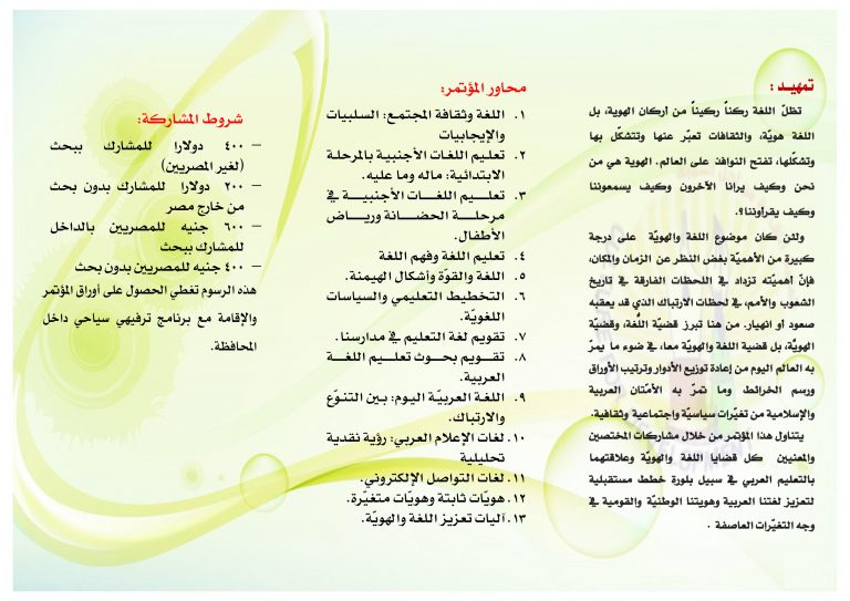 المؤتمر الدولي العلمي: " اللغة والهوية في التعليم العربي " بمصر