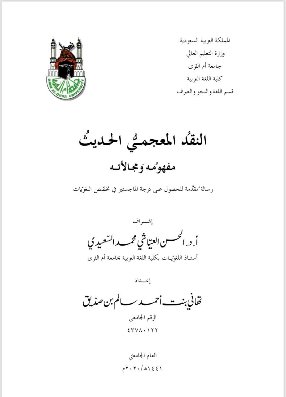 مناقشة رسالة ماجستير: النقد المعجمي المعجمي الحديث مفهومه ومجالاته بأم القرى