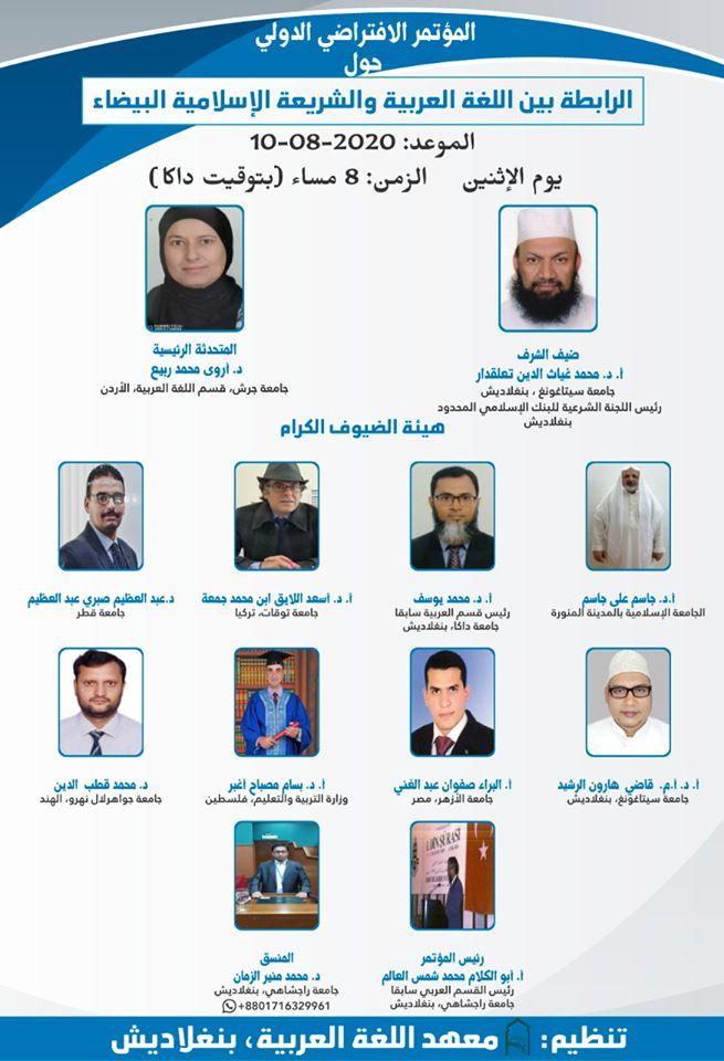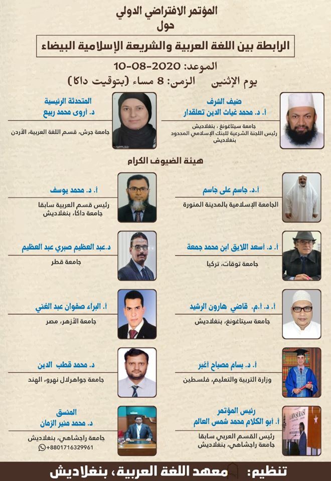 بدعوة كريمة من معهد اللغة العربية التابع لجامعة راجشاهي - بنغلادش، سيتم تنظيم المؤتمر الافتراضي الدولي بعنوان: