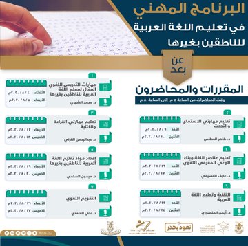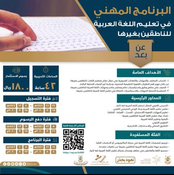 يعلن معهد تعليم اللغة العربية بجامعة أم القرى بالتعاون مع معهد البحوث والدراسات الاستشارية عن إطلاق البرنامج المهني في تعليم اللغة العربية لغير الناطقين بها (عن بُعد) بشهادة معتمدة من جامعة أم القرى.