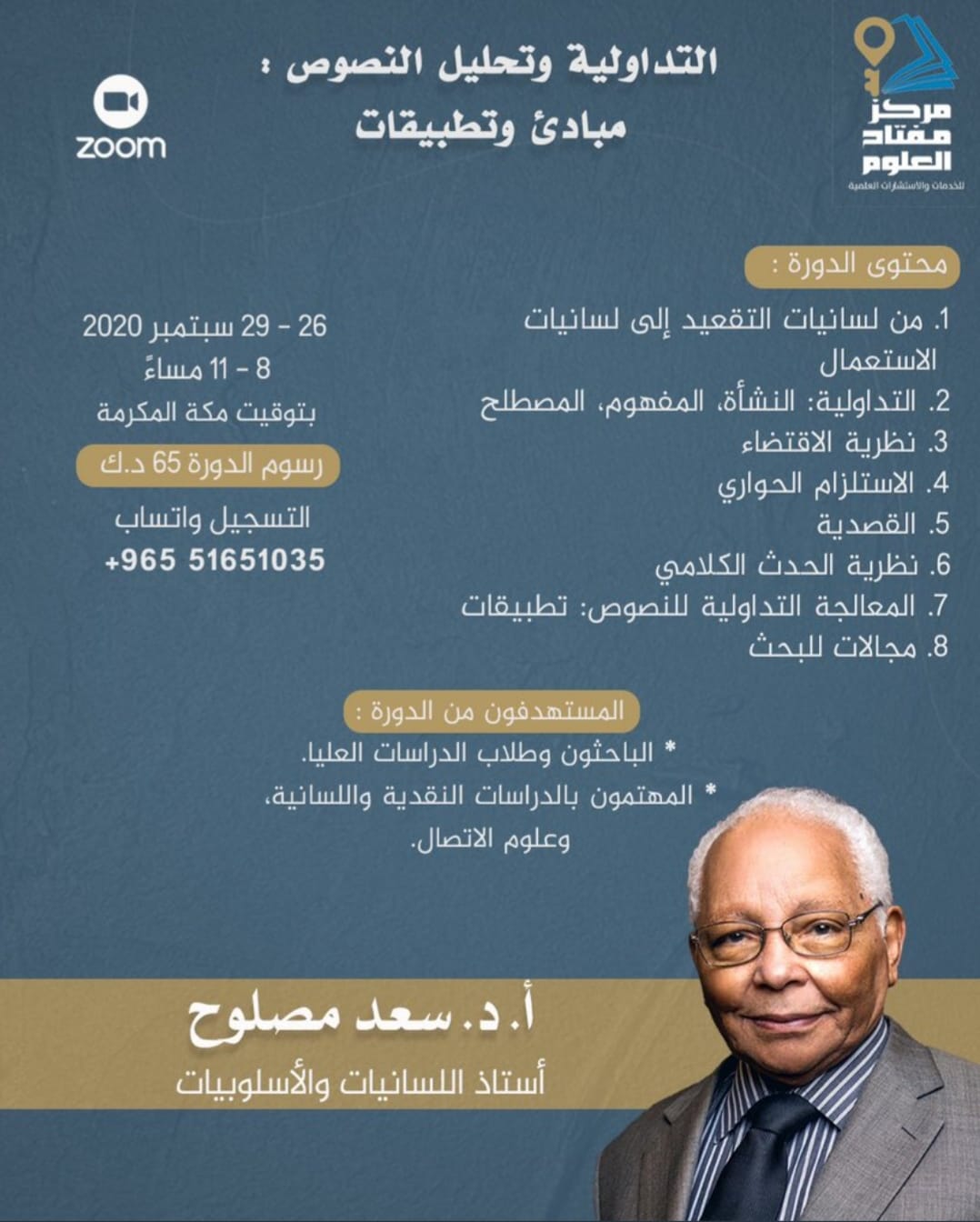 مركز مفتاح العلوم يقيم محاضرة بعنوان: التداولية وتحليل النص مبادئ وتطبيقات