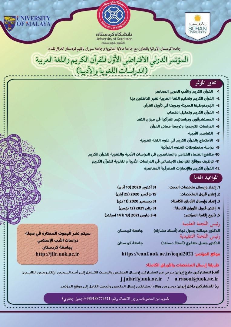 المؤتمر الدولي الافتراضي الأول للقرآن الكريم والعربية (الدراسات اللغوية والأدبية)