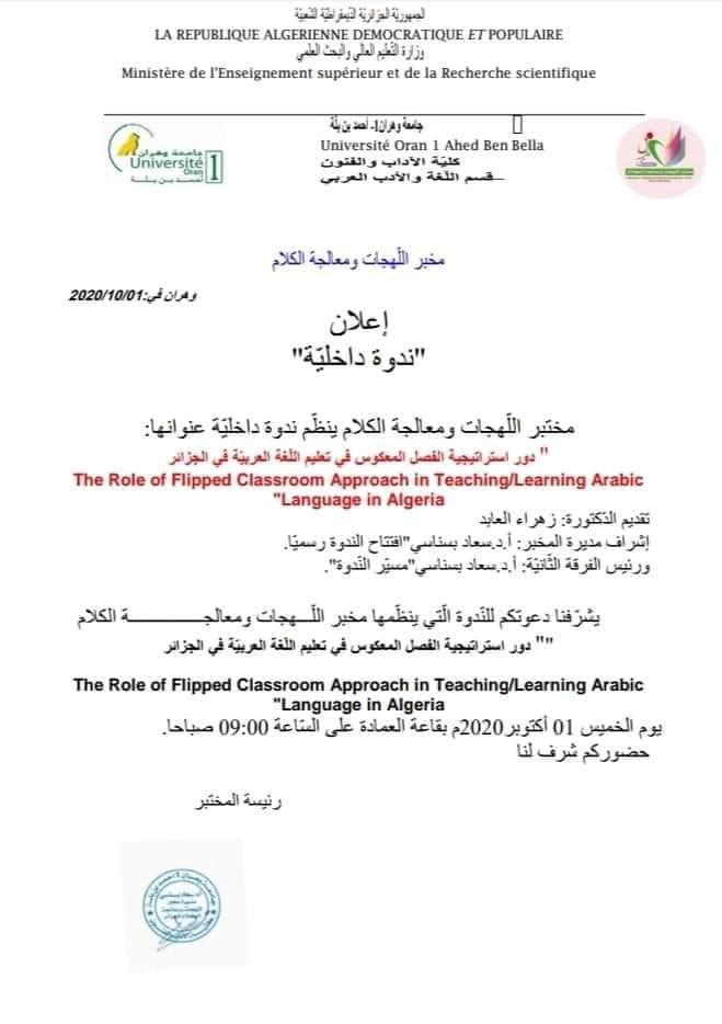 ندوة بعنوان: "استراتيجية الفصل المعكوس في تعليم اللغة العربية في الجزائر"