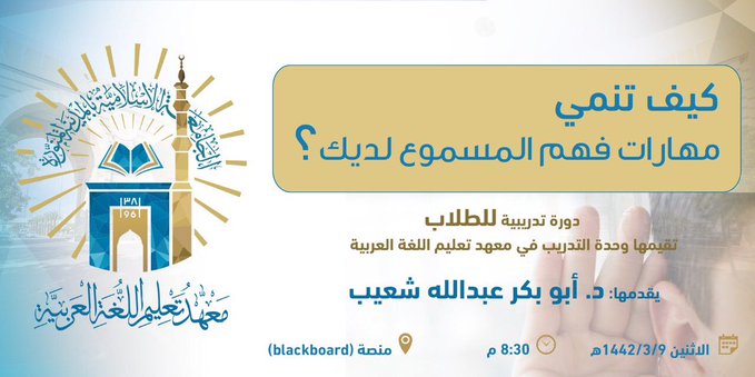 دورة تدريبية بعنوان : " كيف تنمي مهارات فهم المسموع لديك؟ " بمعهد تعليم اللغة العربية بالجامعة الإسلامية