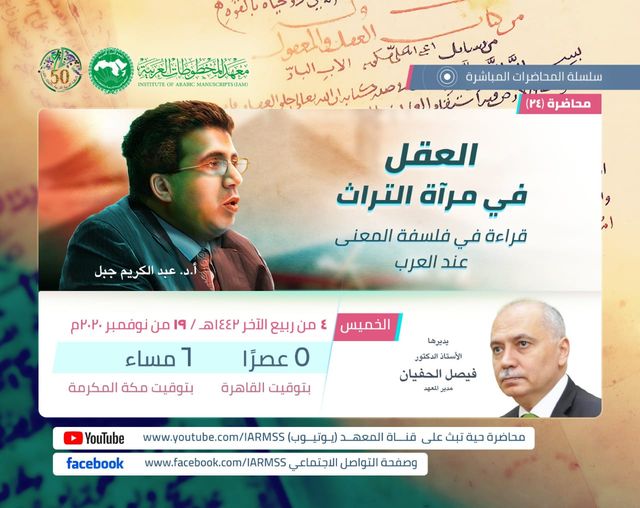 [IMG][/IMG]ينظم معهد المخطوطات العربية المحاضرة المباشرة الرابعة والعشرون بعنوان: