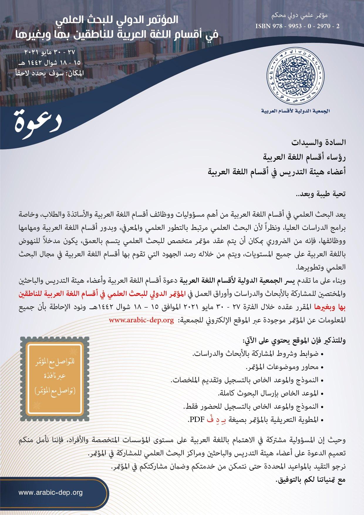 إعلان المؤتمر الدولي للبحث العلمي في أقسام اللغة العربية للناطقين بها وبغيرها