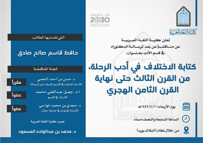 مناقشة الدكتوراه: كتابة الاختلاف في أدب الرحلة من القرن الثالث حتى نهاية القرن الثامن