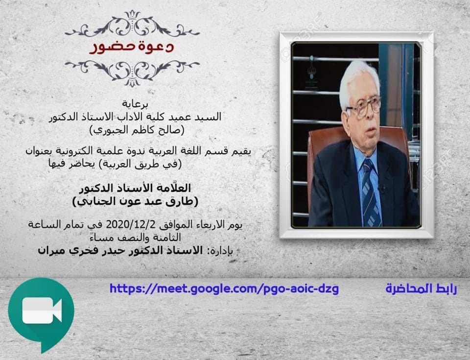 ندوة علمية إلكترونية بعنوان: (في طريق العربية) بكلية الآداب جامعة بابل