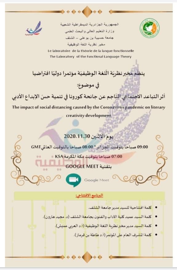 مؤتمر علمي بعنوان: أثر التباعد الاجتماعي الناجم عن جائحة كورونا في تنمية حس الإبداع الأدبي