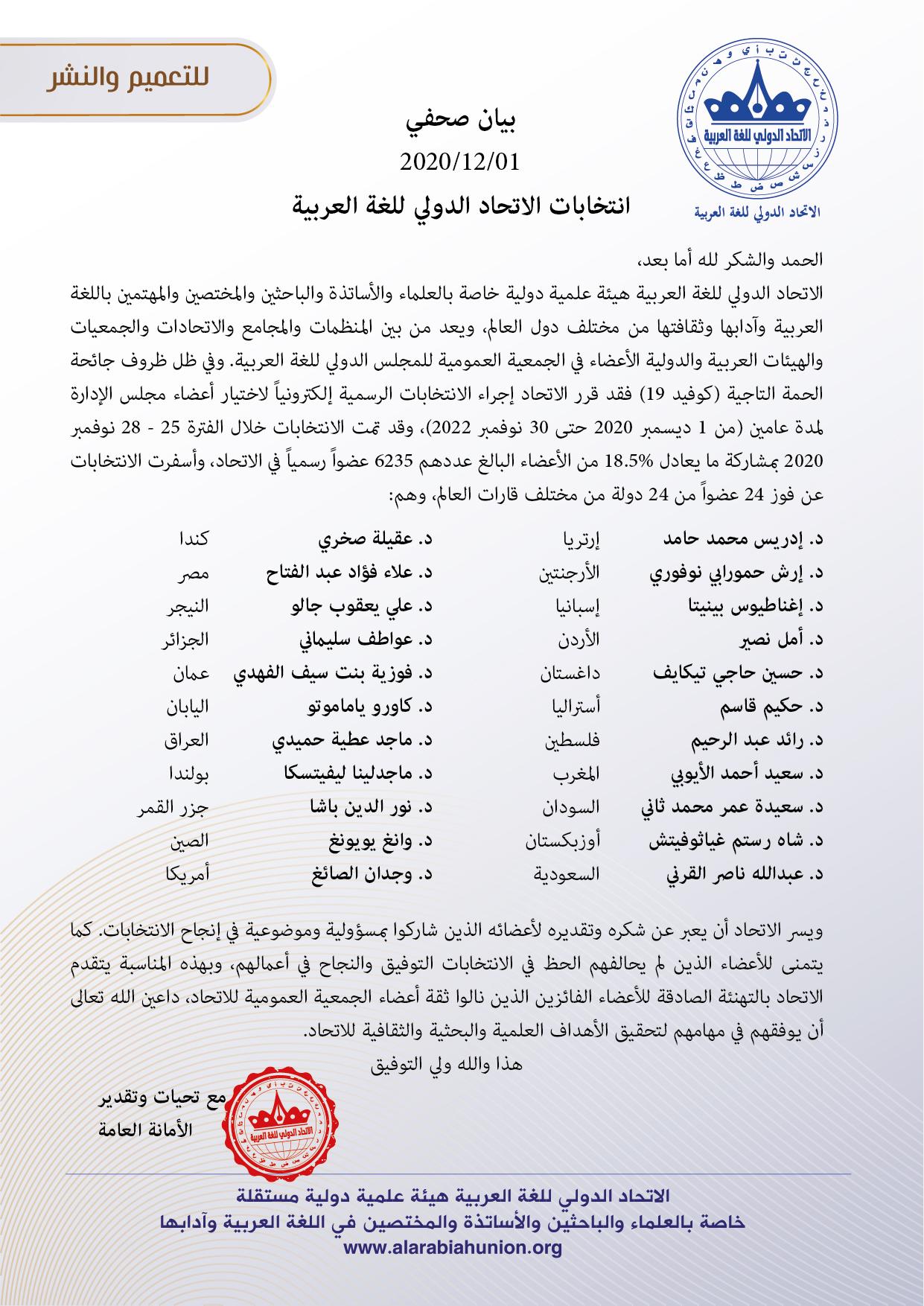 المجلس الدولي للغة العربية ينتخب أعضاء مجلس إدارته الجديد لمدة عامين