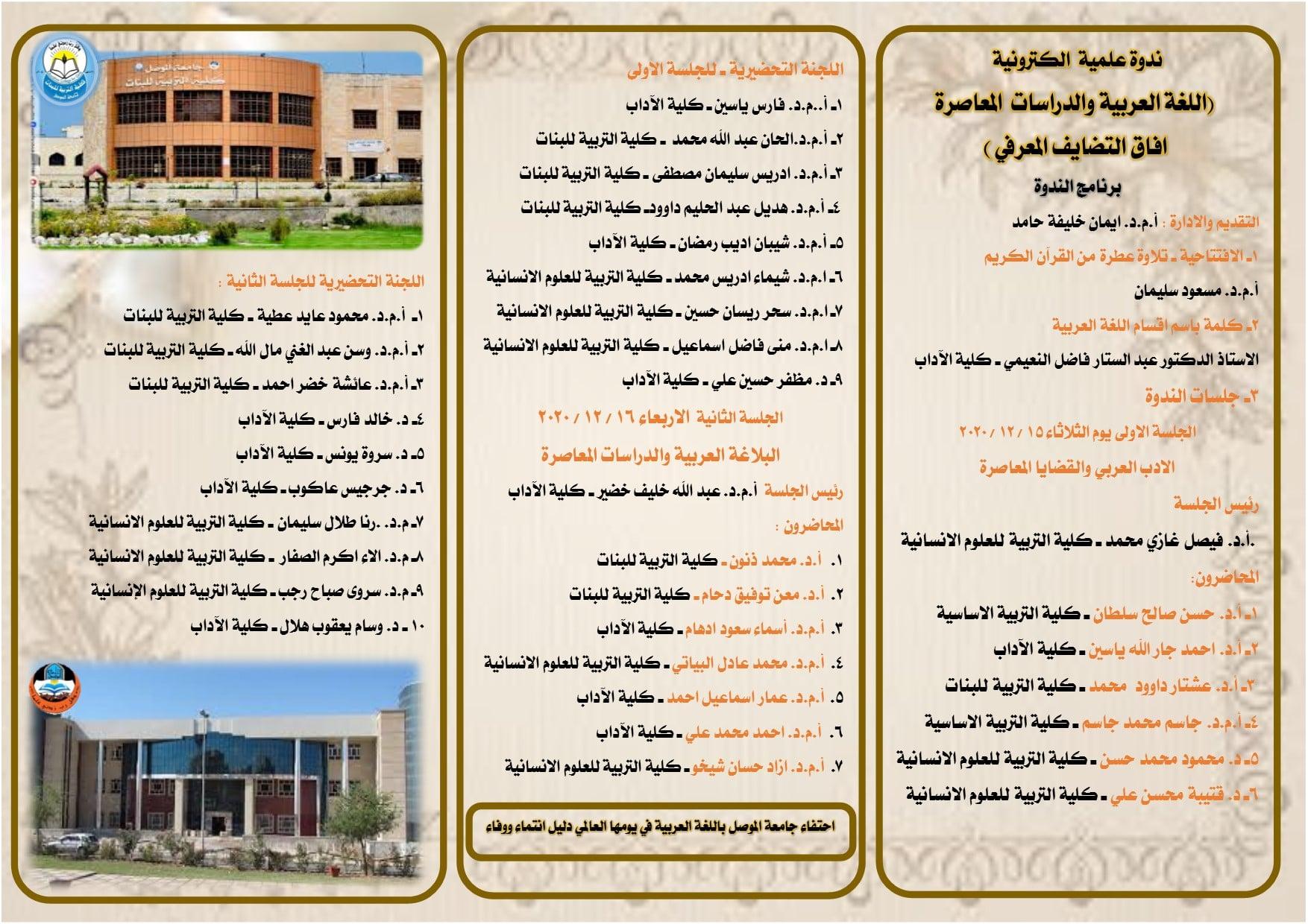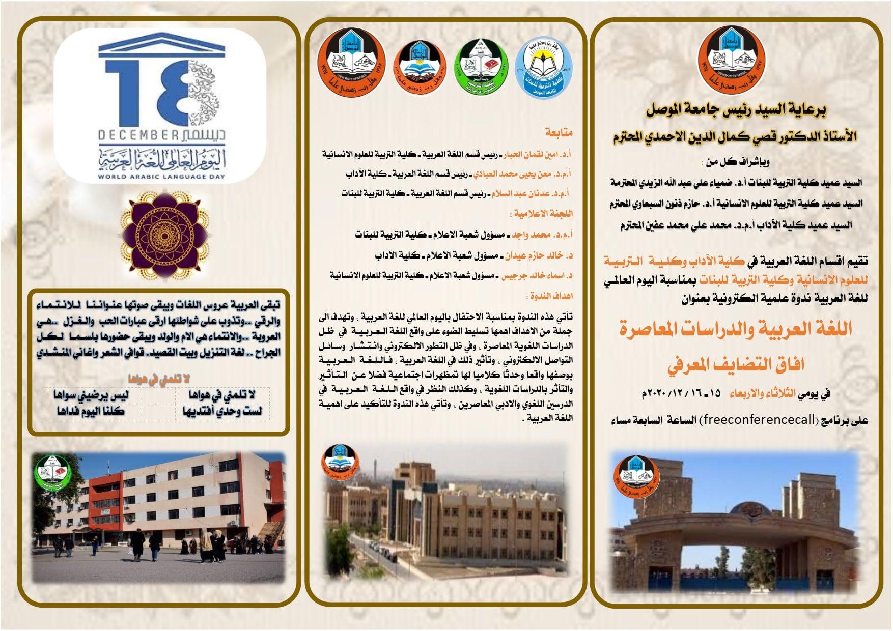 بمناسبة اليوم العالمي للغة العربية ندوة علمية بعنوان: "اللغة العربية والدراسات المعاصرة..آفاق التضايف المعرفي" بجامعة الموصل