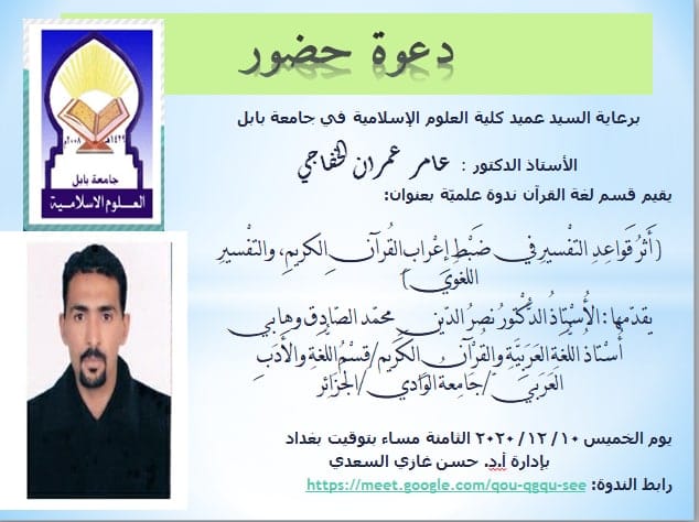 ندوة علمية بعنوان: أثر قواعد التفسير في ضبط إعراب القرآن الكريم والتفسير اللغوي
