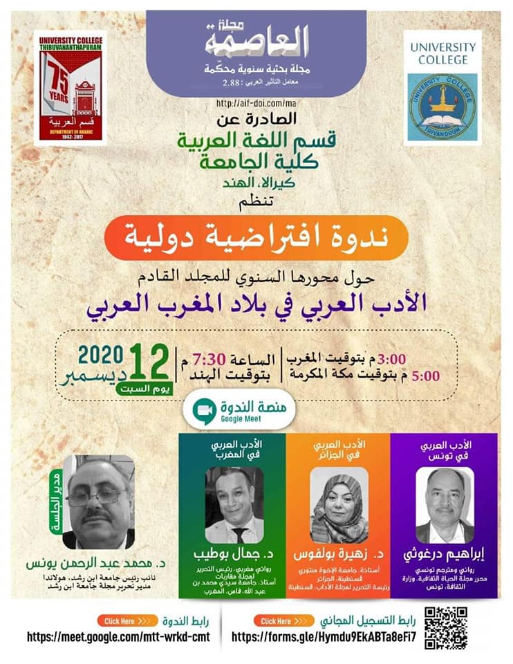 ندوة دولية افتراضية بعنوان: الأدب العربي في بلاد المغرب العربي