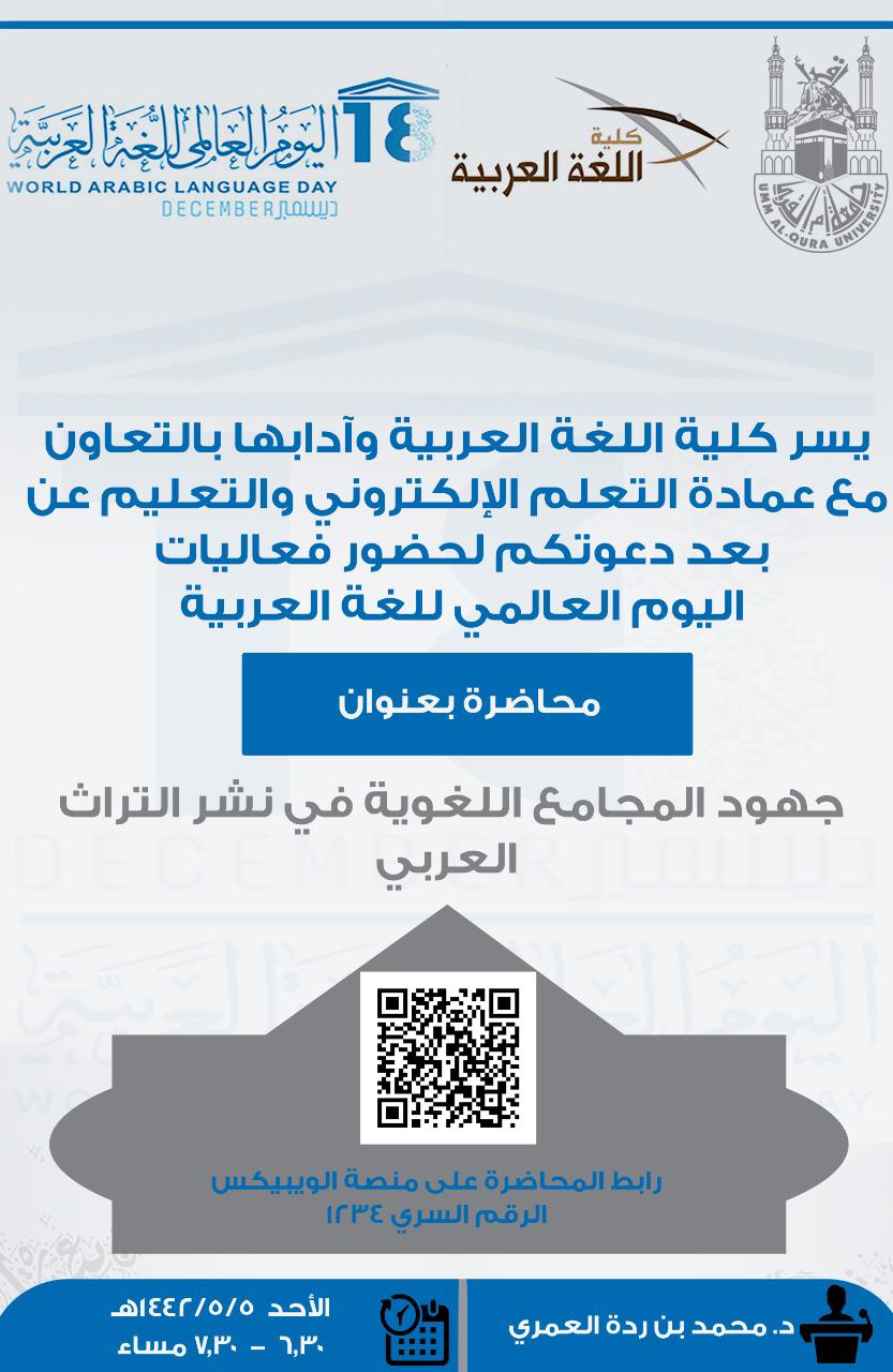 جامعة أم القرى تنظم محاضرة بعنوان: (جهود المجامع اللغويّة في نشر التّراث العربيّ)