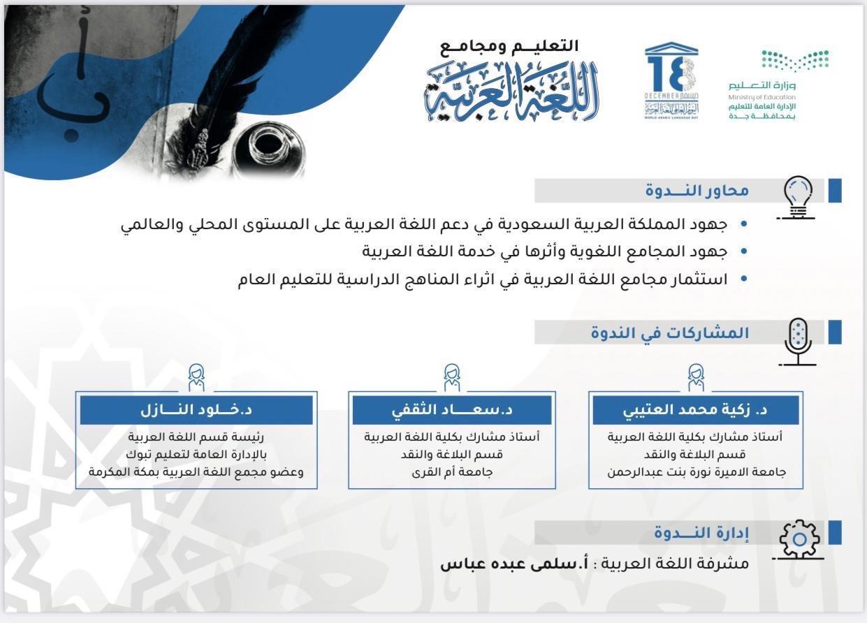 إدارة تعليم جدة تقيم ندوة ثقافية بعنوان " التعليم ومجامع اللغة العربية "