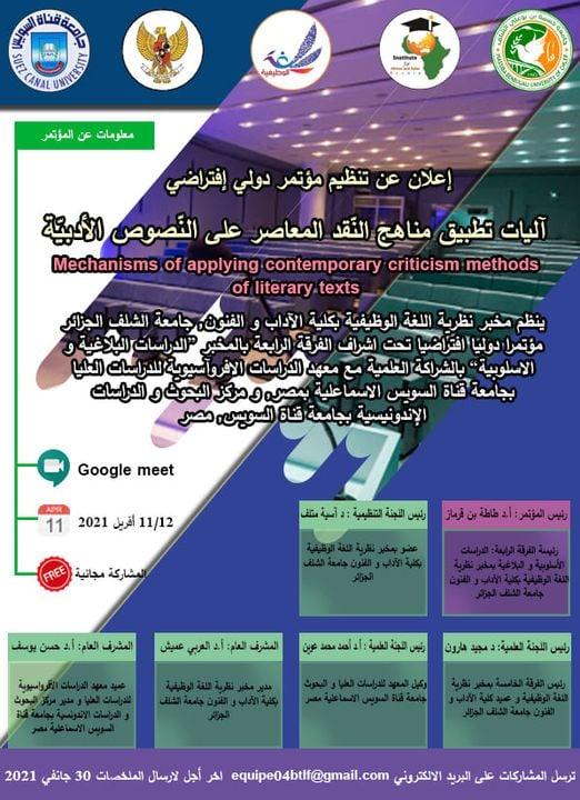 مؤتمر دولي بعنوان:” آليات تطبيق مناهج النقد المعاصر على النصوص الأدبية ”