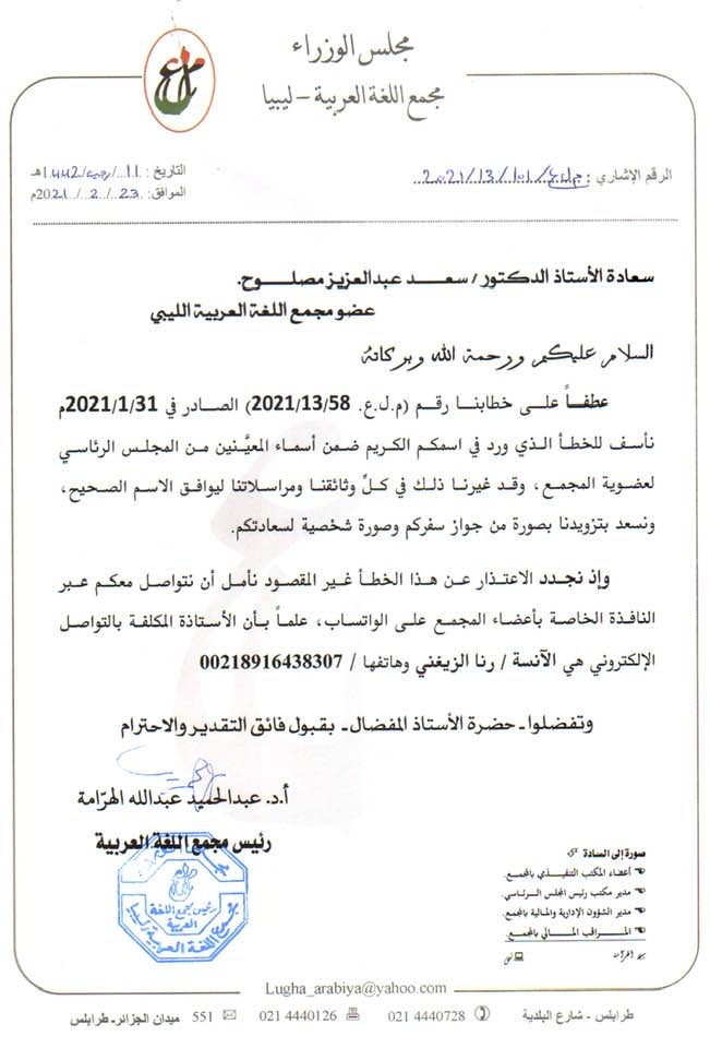 مجمع اللغة العربية الليبي يختار الأستاذ الدكتور سعد مصلوح عضوًا بالمجمع