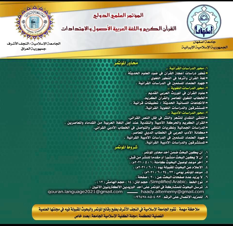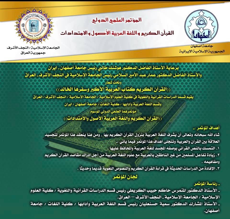 المؤتمر العلمي الدولي: "القرآن الكريم واللغة العربية الأصول والامتدادات" بجامعة أصفهان