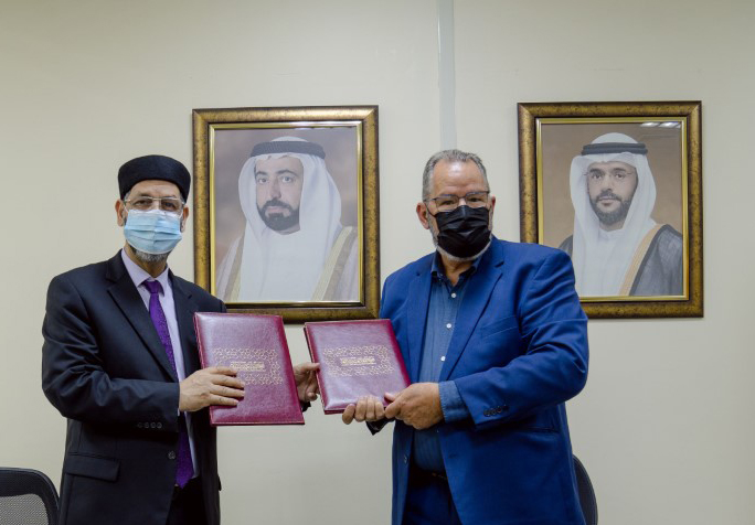وقع الاتفاقية بمقر المجمع بالشارقة الدكتور أمحمد صافي المستغانمي الأمين العام لمجمع اللغة العربية بالشارقة، والبروفيسور بيتر بارلو المدير التنفيذي لأكاديمية الشارقة للفنون الأدائية.