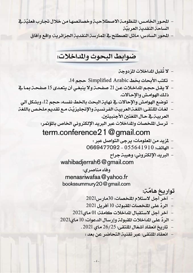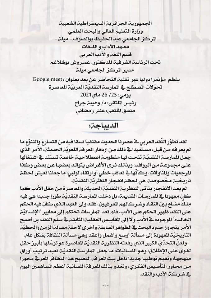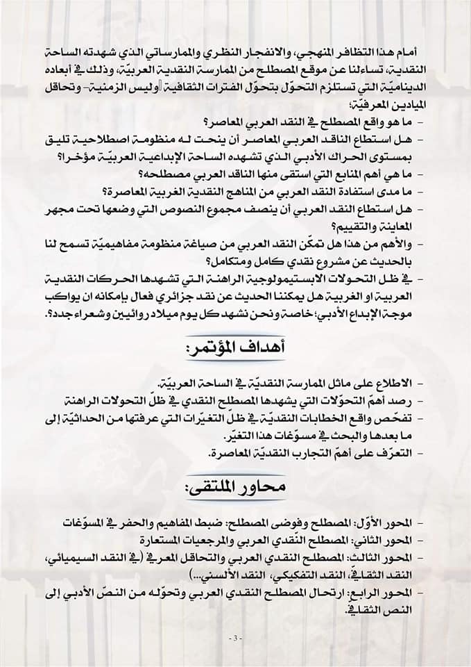 مؤتمر علمي بعنوان: "تحولات المصطلح في الممارسة النقدية العربية المعاصرة"