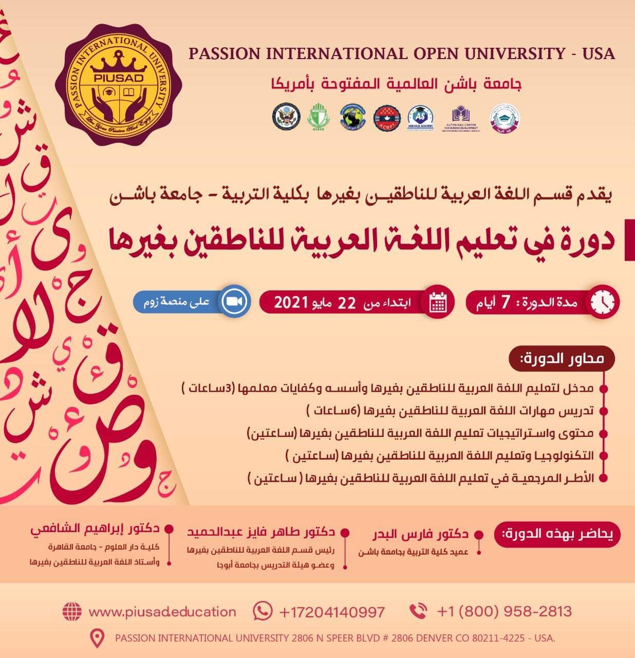 جامعة باشن العالمية المفتوحة بأمريكا تعقد دورة حول تعليم العربية للناطقين بغيرها