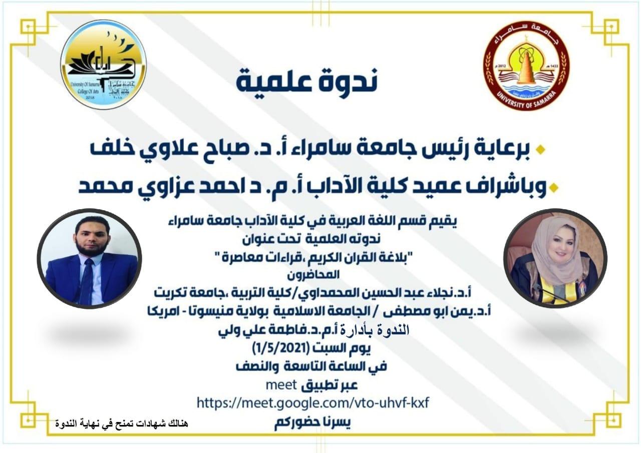 ندوة علمية بعنوان: "بلاغة القرآن الكريم قراءات معاصرة" بجامعة سامراء