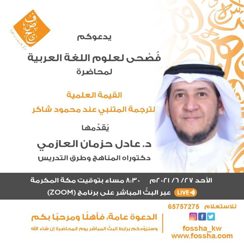 مركز فصحى لعلوم اللغة العربية ينظم محاضرة: "القيمة العلمية لترجمة المتنبي عند محمود شاكر"
